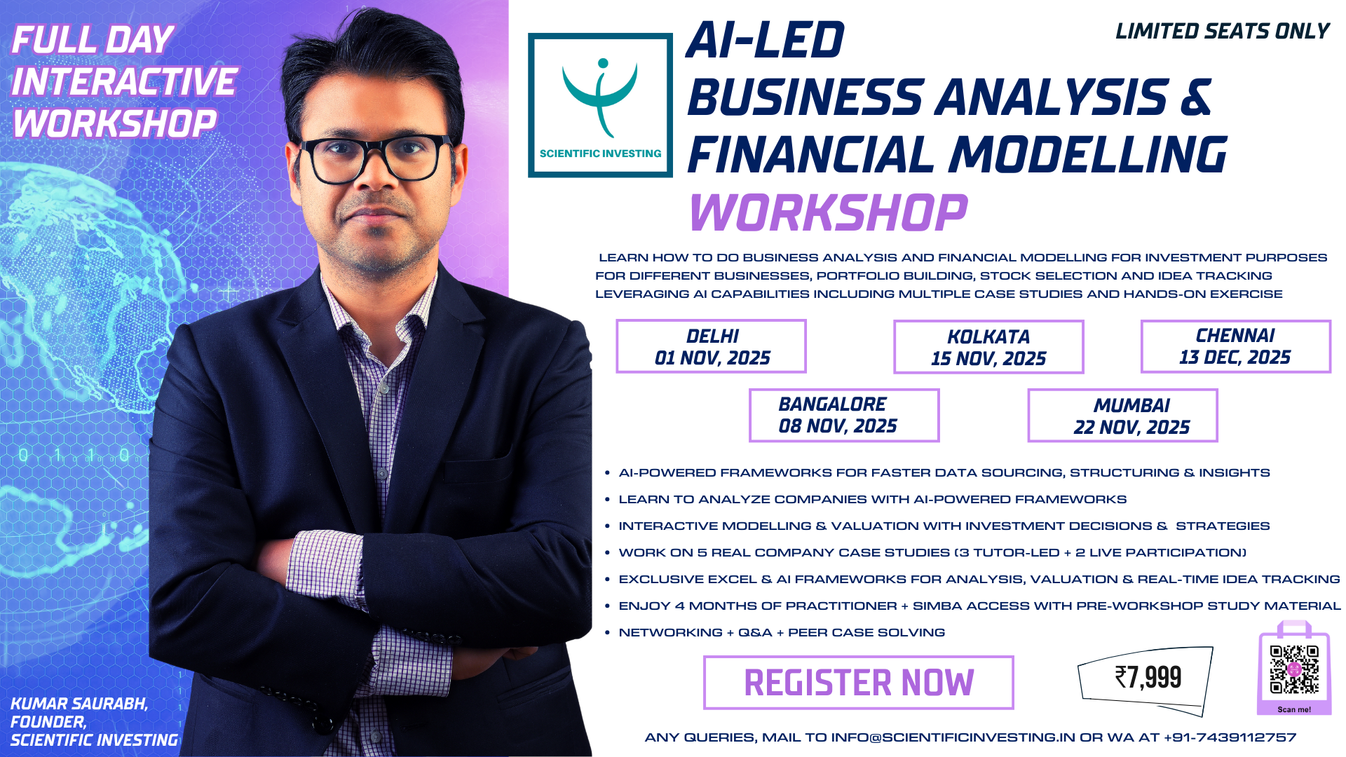 Scientific Investing, founded by Kumar Saurabh in 2021, serves a focused objective - "To leverage qualitative and quantitative data analysis in the world of equity markets to promote financial awareness and financial education." We are an education venture with the pure intent to provide learning and development. Our services encompass various courses, learning tracks, subscriptions, tools, and technology services to educate individuals.